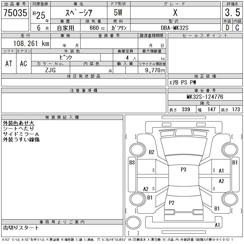 SUZUKI SPACIA 2013 г., лот № 75035