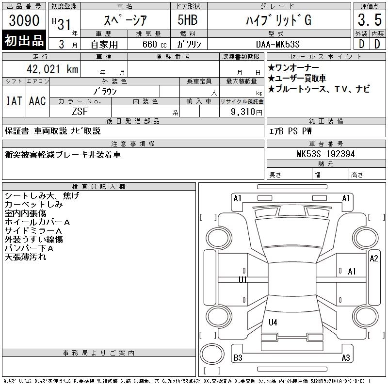 | HYBRID X | DAA-MK53S | R06A | FF | CVT | 658cc | 52ps(38kW)/6500rpm | AИ-92 | 1 496 000 | |