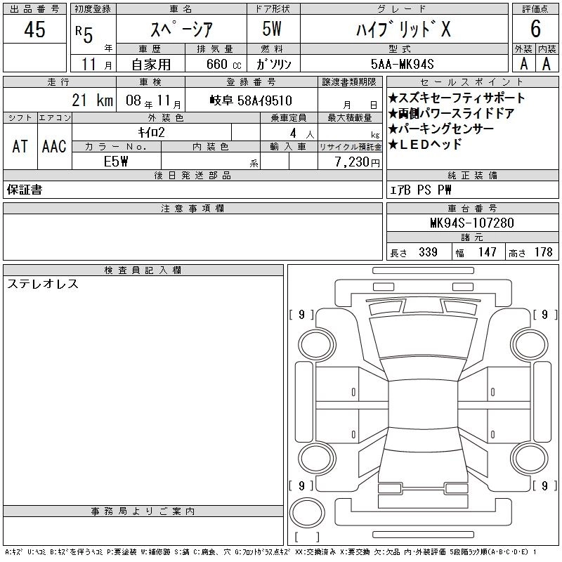SUZUKI SPACIA 2023 г., лот № 45
