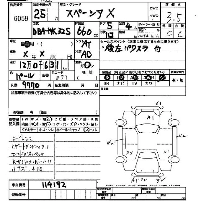 | X | DBA-MK32S | R06A | FF | CVT | 658cc | 52ps(38kW)/6000rpm | AИ-92 | 1 365 000 | |