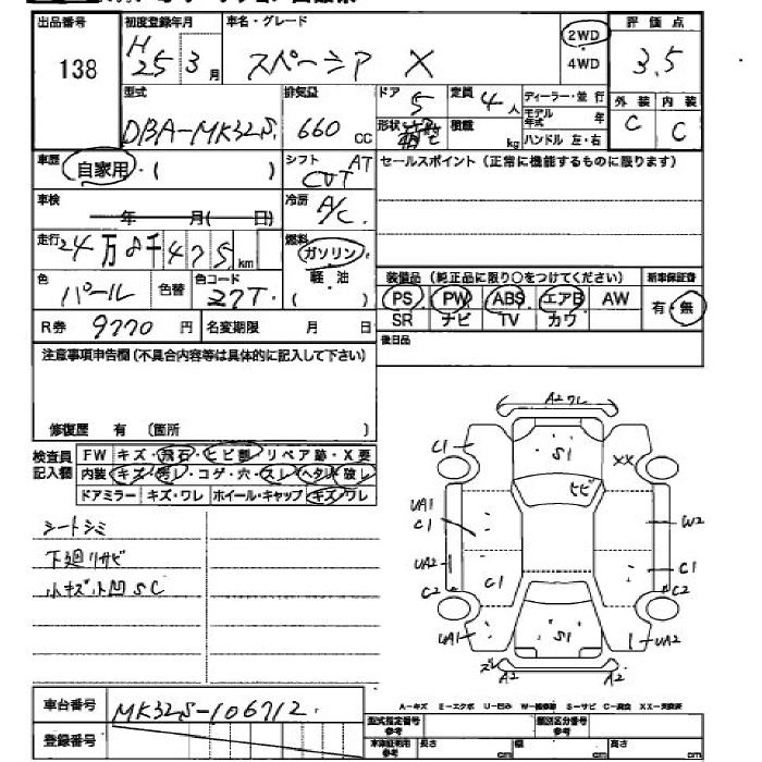 | X | DBA-MK32S | R06A | FF | CVT | 658cc | 52ps(38kW)/6000rpm | AИ-92 | 1 323 000 |