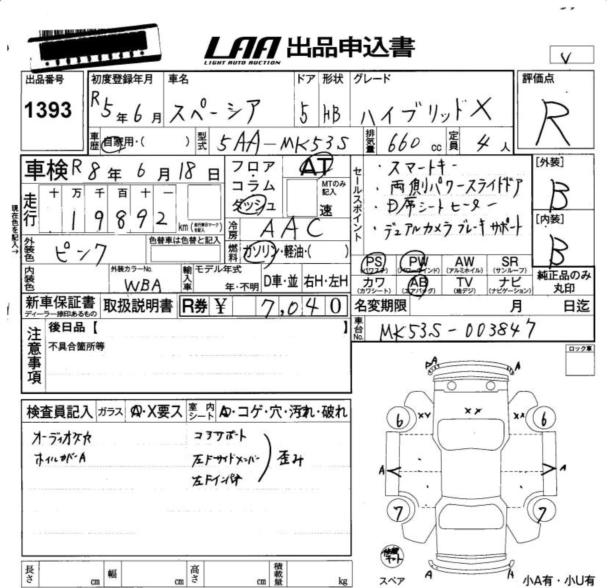 Статус не продан Лот 1393 Аукцион LAA Okayama Дата аукциона 20.03.2026