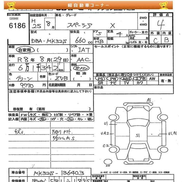 | X | DBA-MK32S | R06A | FF | CVT | 658cc | 52ps(38kW)/6000rpm | AИ-92 | 1 323 000 |