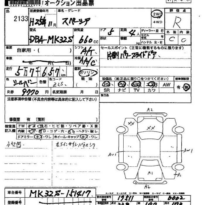 | X | DBA-MK32S | R06A | FF | CVT | 658cc | 52ps(38kW)/6000rpm | AИ-92 | 1 365 000 | |
