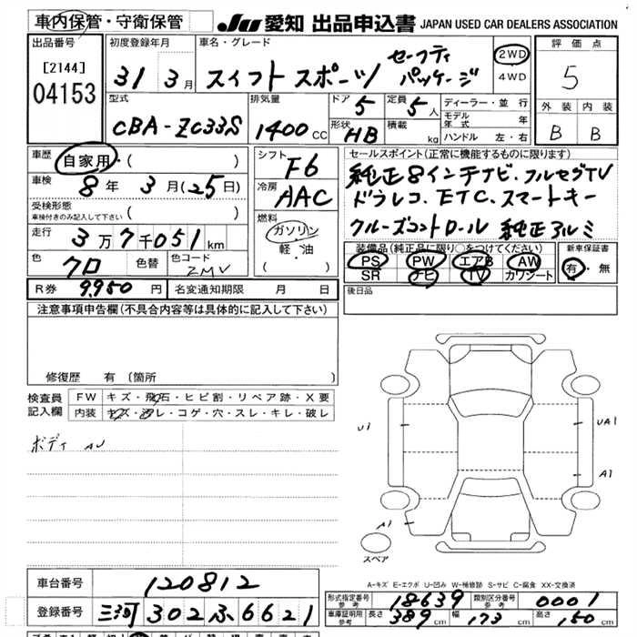 Статус выставлен на аукцион Лот 4153 Аукцион JU Aichi Дата аукциона 05.02.2026