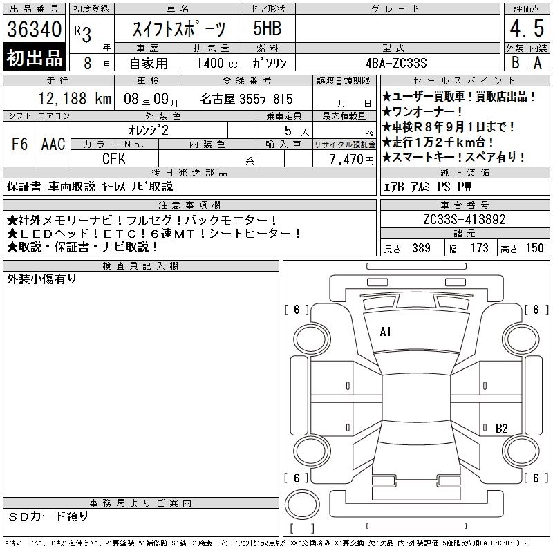 Статус выставлен на аукцион Лот 36340 Аукцион CAA Chubu Дата аукциона 04.02.2026