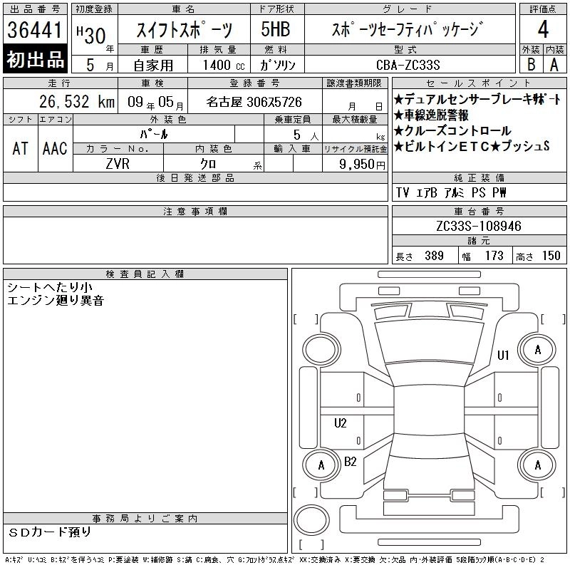 SUZUKI SWIFT SPORTS 2018 г., лот № 36441