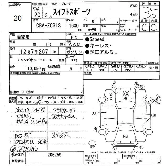 | SPORT S LIMITED | CBA-ZC31S | M16A | FF | 4AT | 1586cc | 125ps(92kW)/6800rpm | AИ-95 | 1 890 000 | |