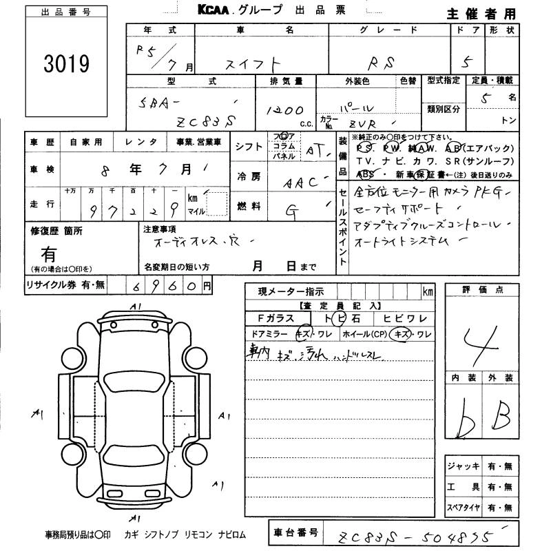 Статус не продан Лот 3019 Аукцион KCAA Fukuoka Дата аукциона 29.01.2026