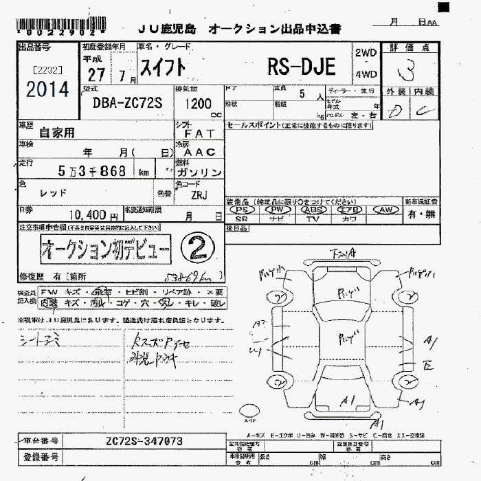| XS-DJE | DBA-ZC72S | K12B | FF | CVT | 1242cc | 91ps(67kW)/6000rpm | AИ-92 | 1 654 560 | |