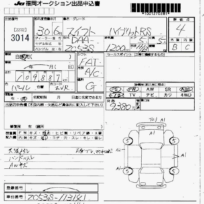 | RS | DBA-ZC83S | K12C | FF | 5MT | 1242cc | 91ps(67kW)/6000rpm | AИ-92 | 1 685 880 | |