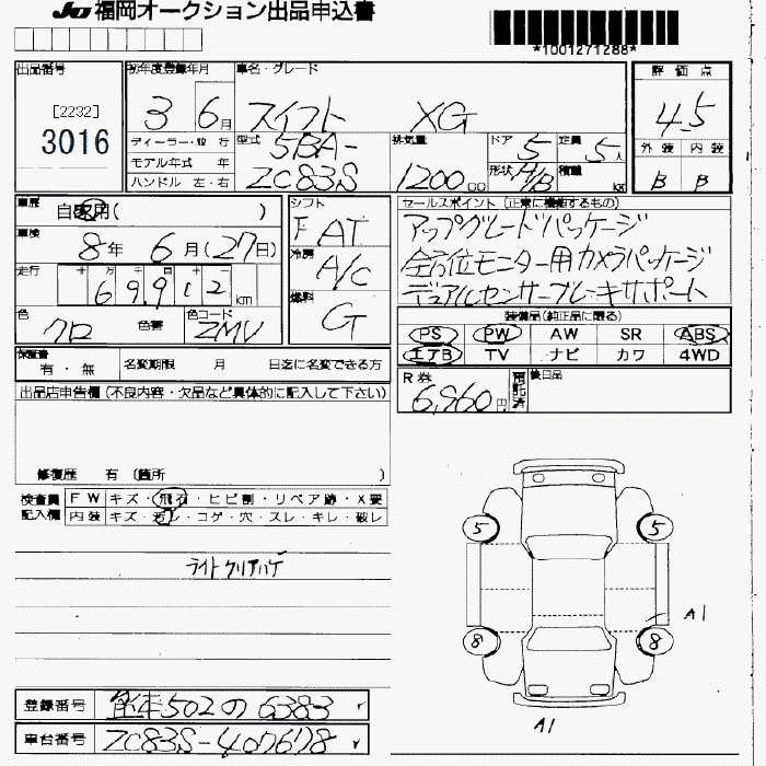 Статус не продан Лот 3016 Аукцион JU Fukuoka Дата аукциона 30.01.2026