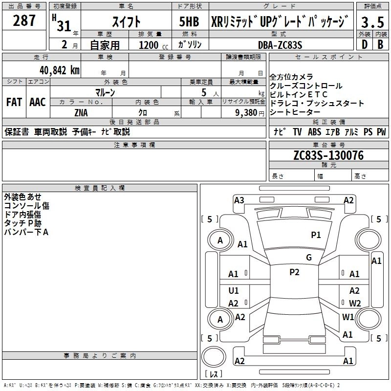 | XG LIMITED | DBA-ZC83S | K12C | FF | CVT | 1242cc | 91ps(67kW)/6000rpm | AИ-92 | 1 350 000 | |
