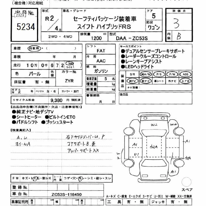 | HYBRID MG | 5AA-ZC53S | K12C | FF | CVT | 1242cc | 91ps(67kW)/6000rpm | AИ-92 | 1 633 500 | |
