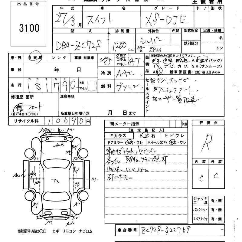 RS DBA-ZC72S K12B FF 5MT 1242cc 91ps(67kW)/6000rpm AИ-92 1 481 760