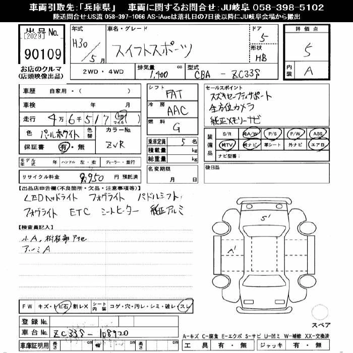 | XR LIMITED | DBA-ZC83S | K12C | FF | CVT | 1242cc | 91ps(67kW)/6000rpm | AИ-92 | 1 507 680 | |