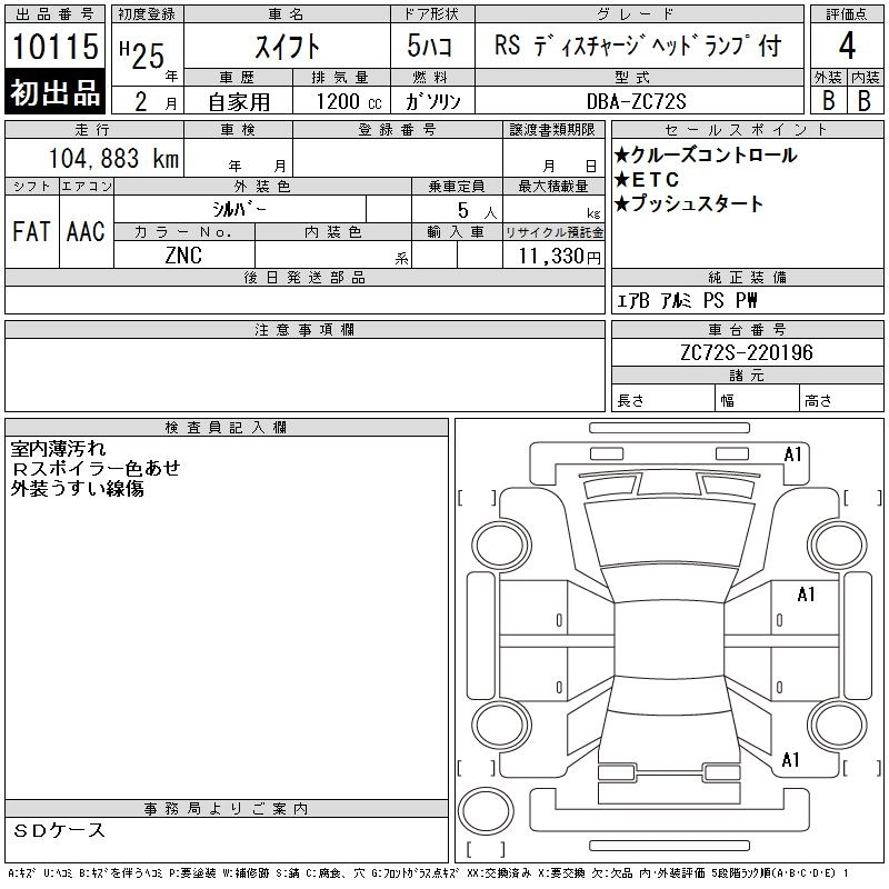 | RS | DBA-ZC72S | K12B | FF | CVT | 1242cc | 91ps(67kW)/6000rpm | AИ-92 | 1 426 950 | |