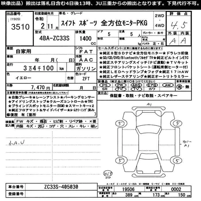 | HYBRID SZ | 5AA-ZC43S | K12C | FF | 5AT | 1242cc | 91ps(67kW)/6000rpm | AИ-92 | 2 087 800 | |