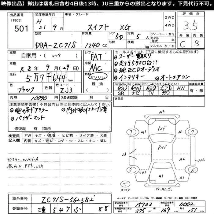 | XG AERO | DBA-ZC71S | K12B | FF | CVT | 1242cc | 90ps(66kW)/6000rpm | AИ-92 | 1 281 000 | |
