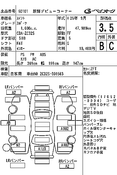 | RS | DBA-ZC72S | K12B | FF | CVT | 1242cc | 91ps(67kW)/6000rpm | AИ-92 | 1 426 950 | |
