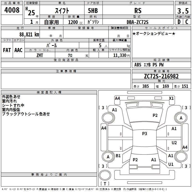 RS DBA-ZC72S K12B FF 5MT 1242cc 91ps(67kW)/6000rpm AИ-92 1 426 950