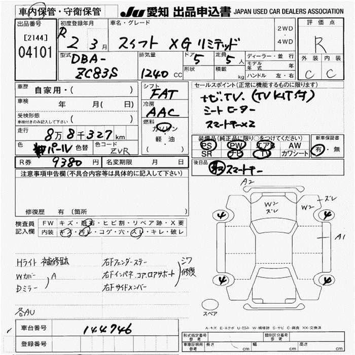 | XG | 5BA-ZC83S | K12C | FF | CVT | 1242cc | 91ps(67kW)/6000rpm | AИ-92 | 1 540 000 | |