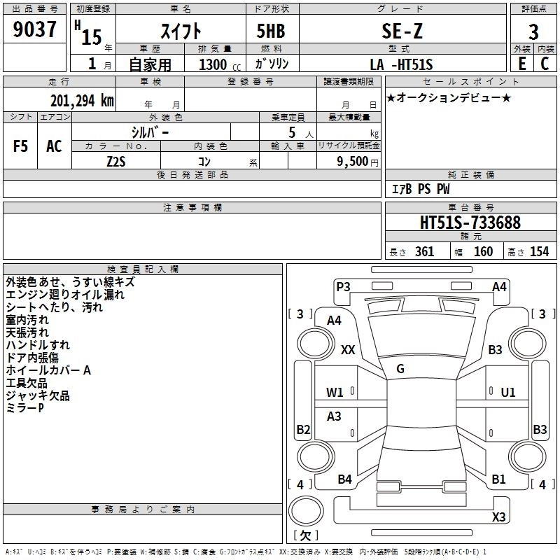 | SE-Z | LA-HT51S | M13A | FF | 4AT | 1328cc | 88ps(65kW)/6000rpm | AИ-92 | 865 000 | |