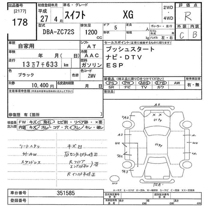 | XG | DBA-ZC72S | K12B | FF | 5MT | 1242cc | 91ps(67kW)/6000rpm | AИ-92 | 1 316 520 |