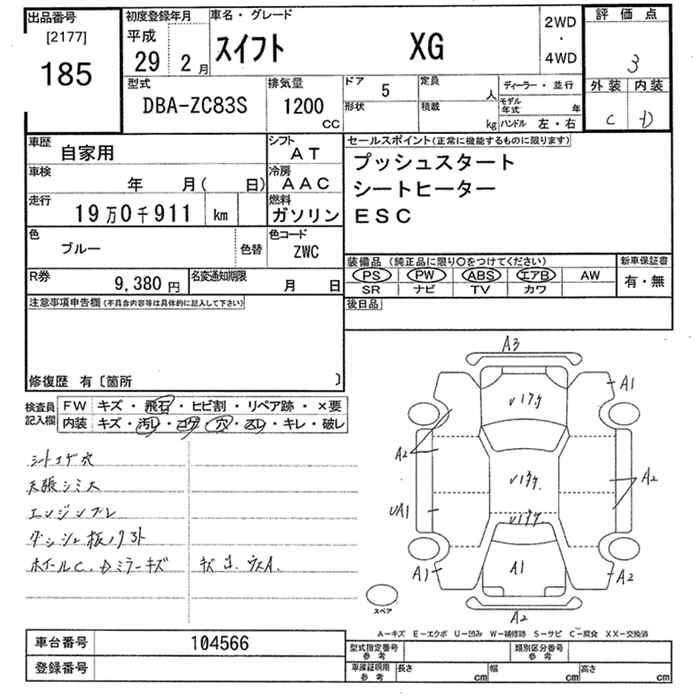 | XG LIMITED | DBA-ZC83S | K12C | FF | 5MT | 1242cc | 91ps(67kW)/6000rpm | AИ-92 | 1 350 000 |
