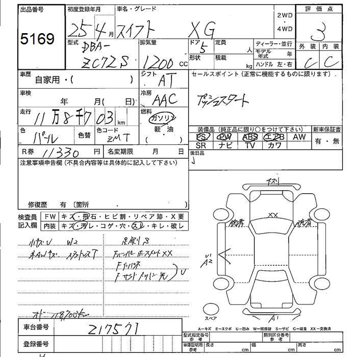 | XG | DBA-ZC72S | K12B | FF | 5MT | 1242cc | 91ps(67kW)/6000rpm | AИ-92 | 1 279 950 | |