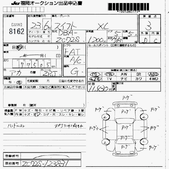| XL IDLING STOP | DBA-ZC72S | K12B | FF | CVT | 1242cc | 91ps(67kW)/6000rpm | AИ-92 | 1 412 250 | |