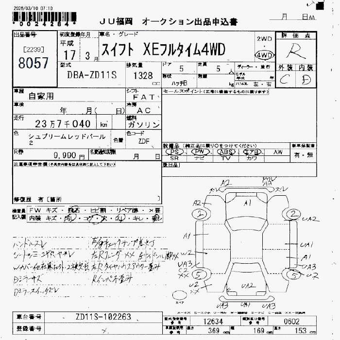 | 1.3XG | DBA-ZD11S | M13A | Full-time 4WD | 5MT | 1328cc | 91ps(67kW)/6000rpm | AИ-92 | 1 265 250 | |