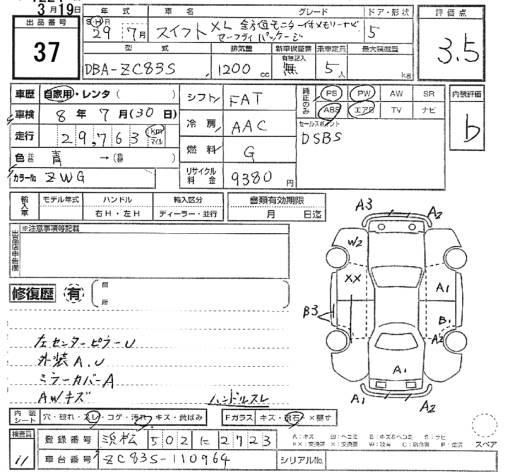 | XG LIMITED | DBA-ZC83S | K12C | FF | 5MT | 1242cc | 91ps(67kW)/6000rpm | AИ-92 | 1 350 000 |