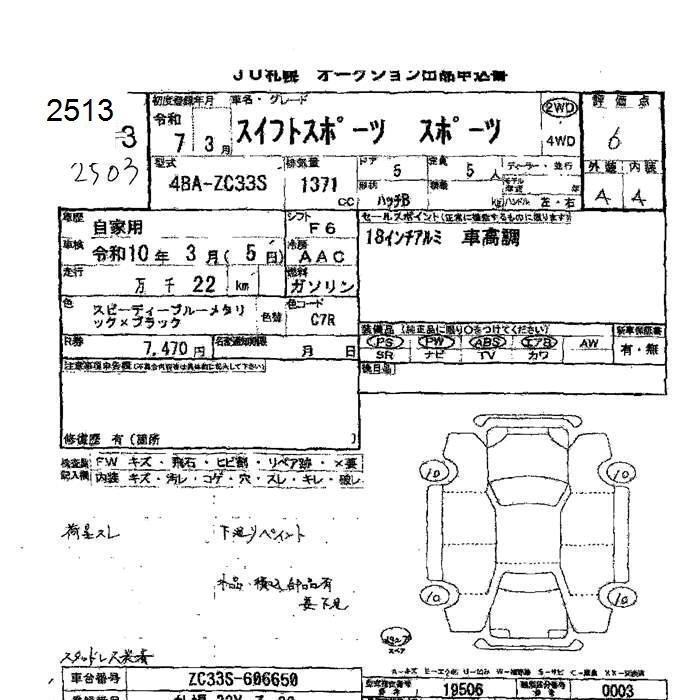 Статус выставлен на аукцион Лот 2513 Аукцион JU Hokkaido Дата аукциона 20.03.2026