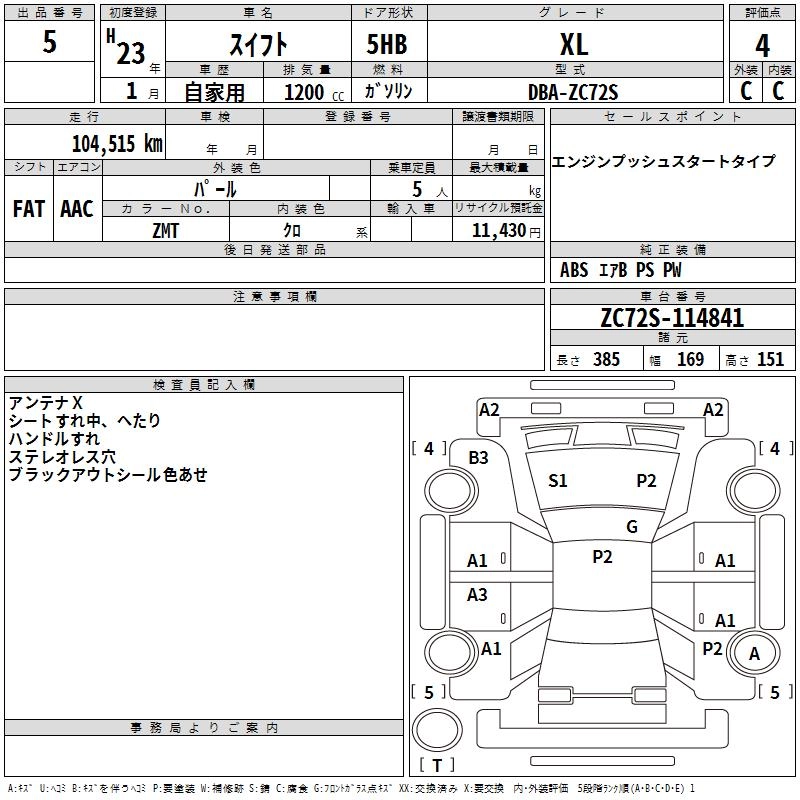 | XL IDLING STOP | DBA-ZC72S | K12B | FF | CVT | 1242cc | 91ps(67kW)/6000rpm | AИ-92 | 1 412 250 | |