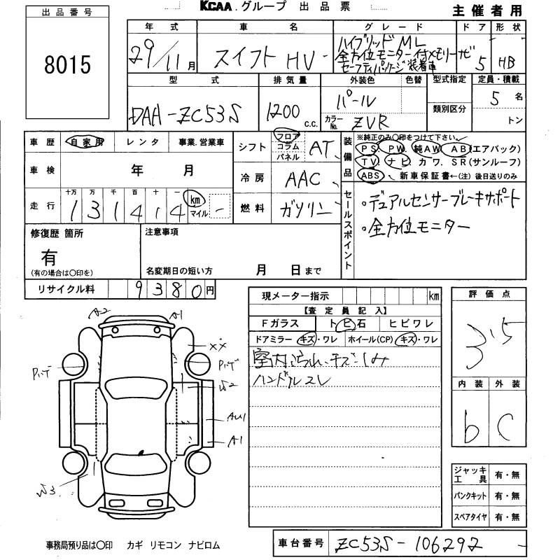 | XG LIMITED | DBA-ZC83S | K12C | FF | CVT | 1242cc | 91ps(67kW)/6000rpm | AИ-92 | 1 350 000 | |