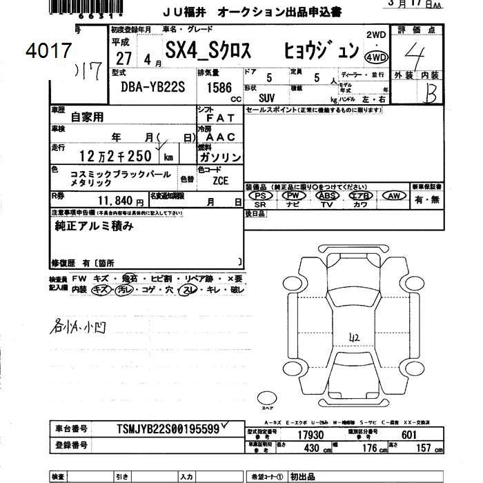 Статус выставлен на аукцион Лот 4017 Аукцион JU Fukui Дата аукциона 17.03.2026