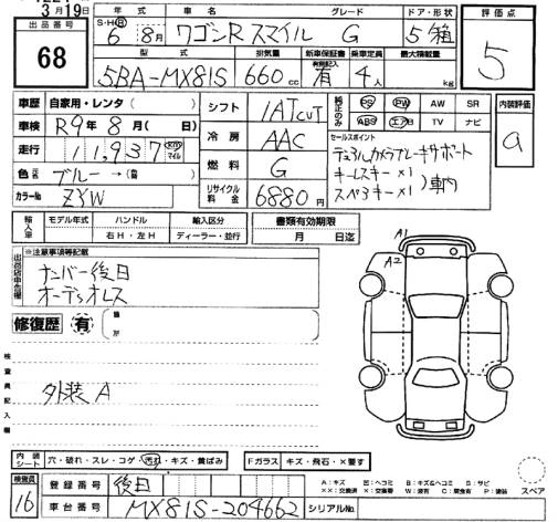 Стартовая цена авто на аукционе 600 000 ¥