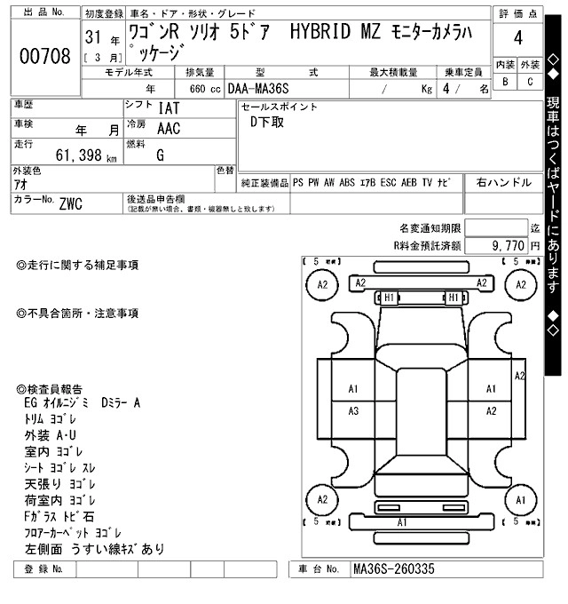 Год выпуска2019 Пробег 61 000 км КузовMA36S КомплектацияHYBRID MZ MONITOR CAMERA PACKAGE
