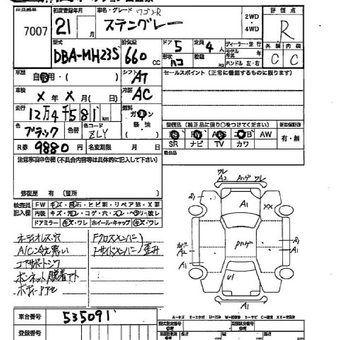 | TS | CBA-MH23S | K6A | FF | CVT | 658cc | 64ps(47kW)/6000rpm | AИ-92 | 1 554 000 | |