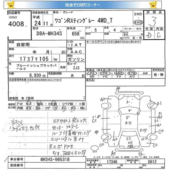 T DBA-MH34S R06A FF CVT 658cc 64ps(47kW)/6000rpm AИ-92 1 517 250