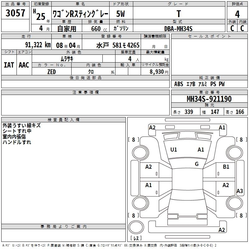 Год выпуска2013 Пробег 91 000 км КузовMH34S КомплектацияT