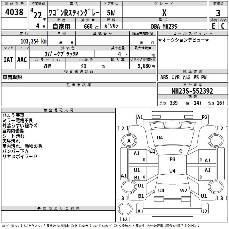 | X | DBA-MH23S | K6A | FF | CVT | 658cc | 54ps(40kW)/6500rpm | AИ-92 | 1 286 250 | |
