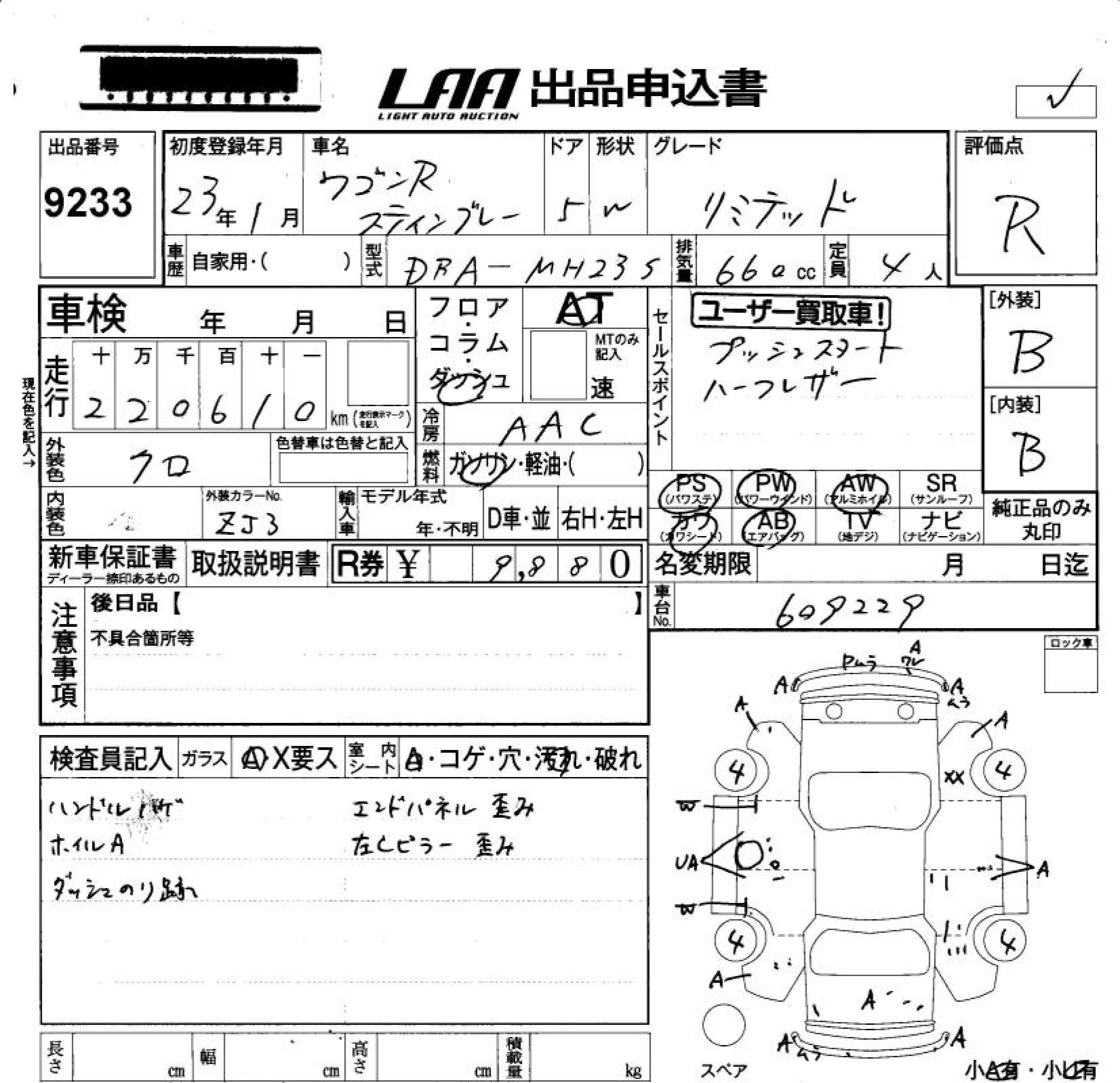 | LIMITED II | DBA-MH23S | K6A | FF | CVT | 658cc | 54ps(40kW)/6500rpm | AИ-92 | 1 312 500 |