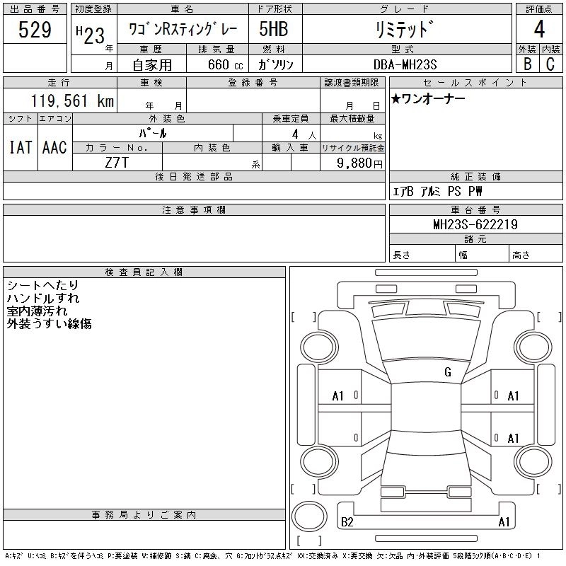 | LIMITED II | DBA-MH23S | K6A | FF | CVT | 658cc | 54ps(40kW)/6500rpm | AИ-92 | 1 312 500 |