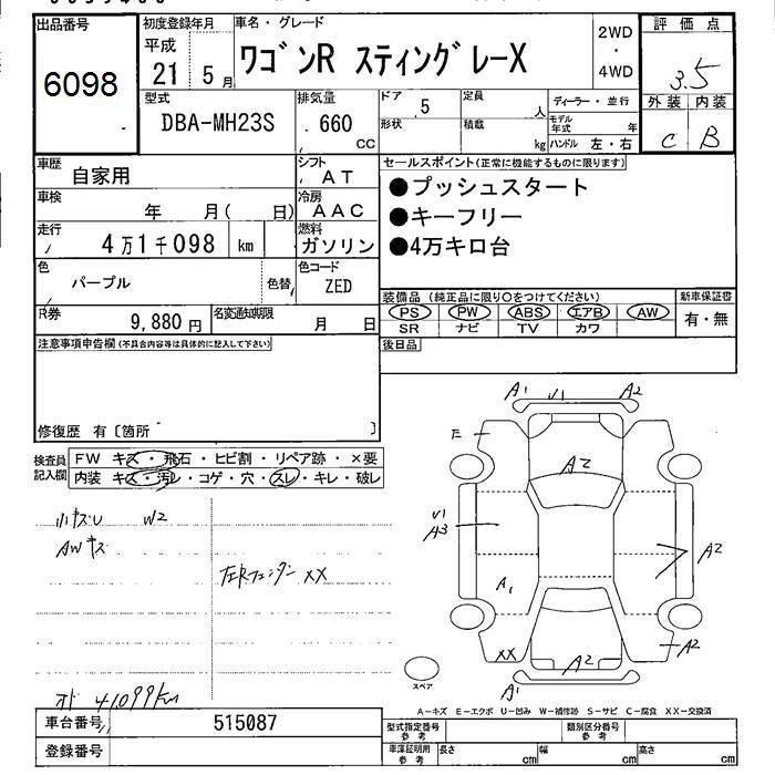 | X | DBA-MH23S | K6A | FF | CVT | 658cc | 54ps(40kW)/6500rpm | AИ-92 | 1 286 250 | |