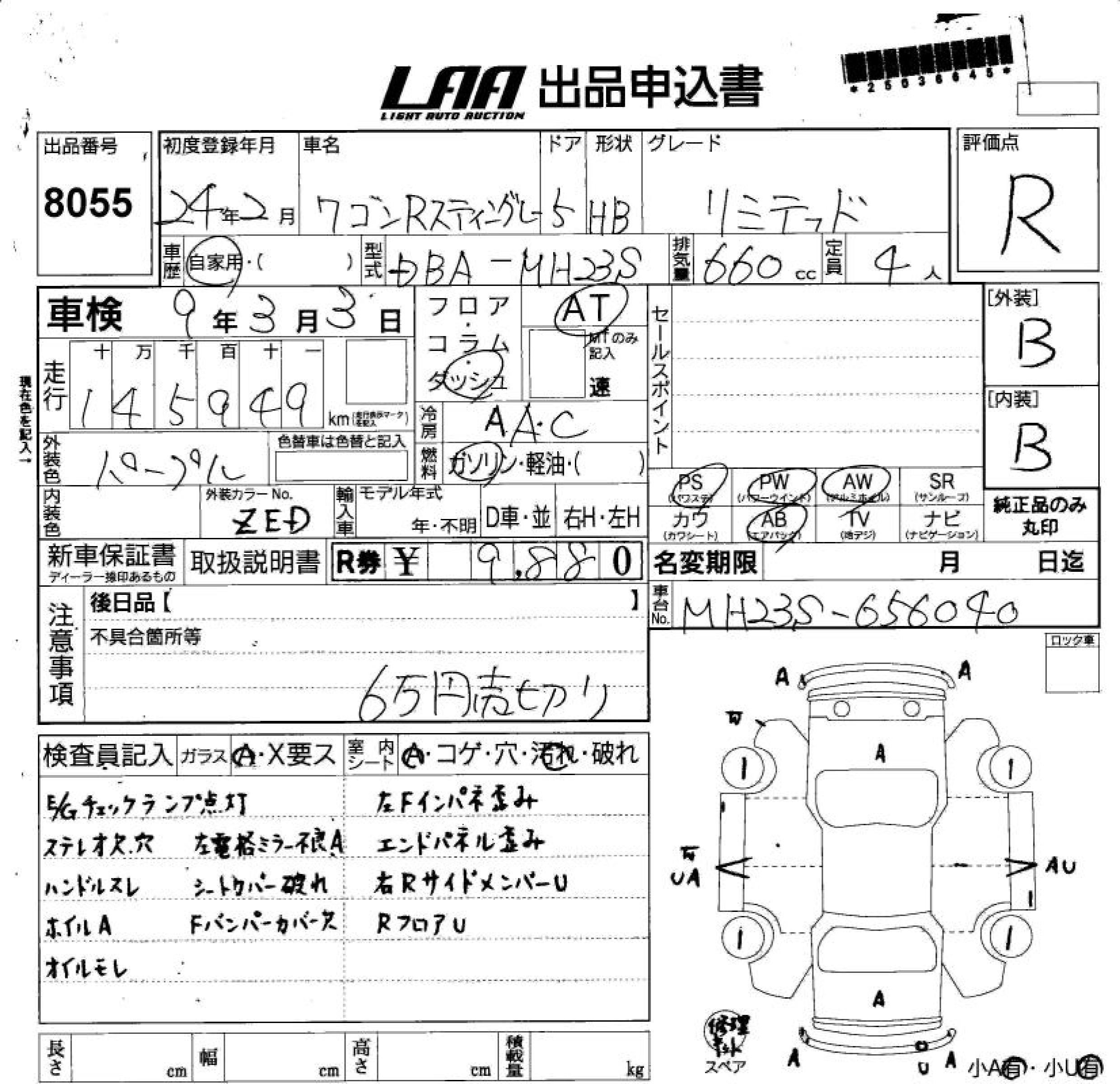 | T | DBA-MH34S | R06A | FF | CVT | 658cc | 64ps(47kW)/6000rpm | AИ-92 | 1 496 250 | |
