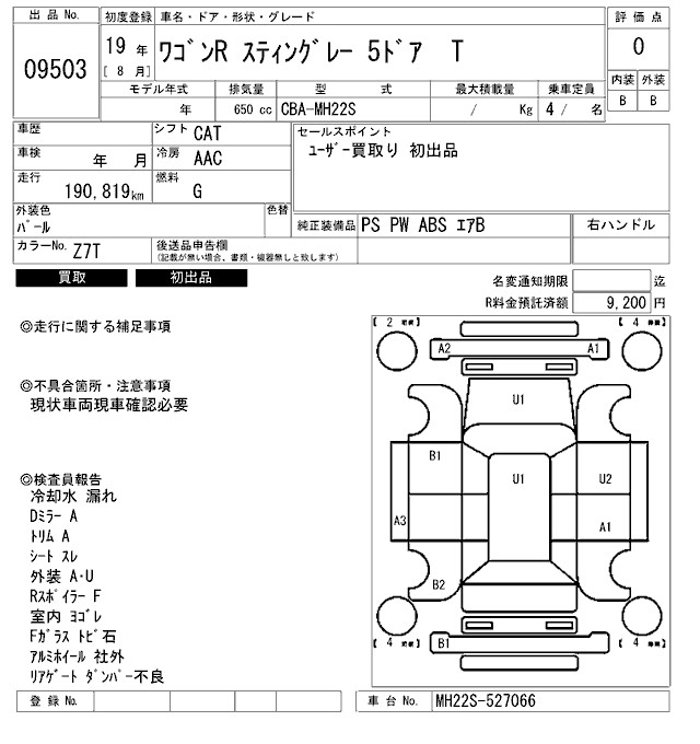Год выпуска2007 Пробег 191 000 км КузовMH22S КомплектацияT
