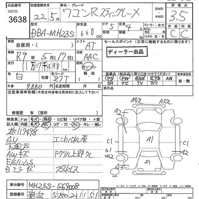 T CBA-MH23S K6A Full-time 4WD CVT 658cc 64ps(47kW)/6000rpm AИ-92 1 514 100
