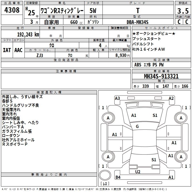 | T | DBA-MH34S | R06A | FF | CVT | 658cc | 64ps(47kW)/6000rpm | AИ-92 | 1 496 250 | |